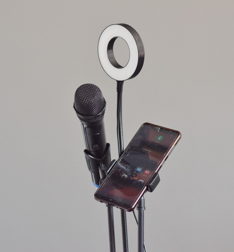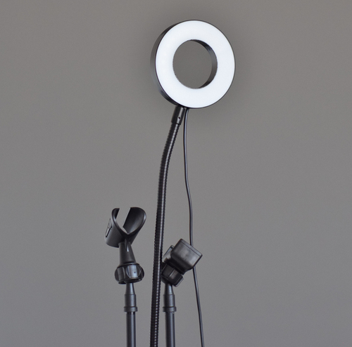 Aro Led con base tipo clip y soporte para celular y microfono