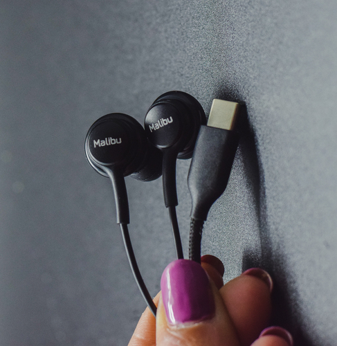 Auricular manos libres. Ficha tipo C Sonido premium. Diseño deportivo. Color Negro Presentación en caja