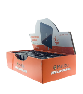 Cabezal cargador Malibu 2A Presentación en display de 24 unidades Colores: Blanco / Negro