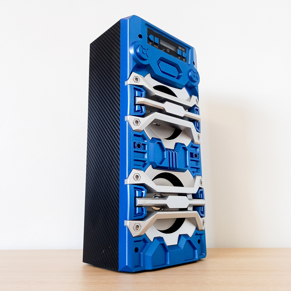 Parlante portatil tipo amplificador Bluetooth. Caja de madera